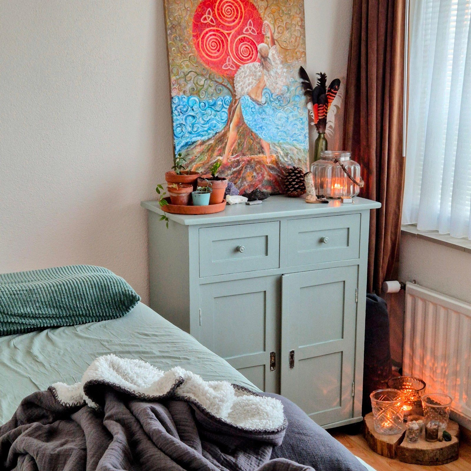 Magic! vond ik het. Zowel om te ontvangen als om ermee te werken. Nog meer voorbij de woorden en het verhaal dat ons hoofd zo graag als houvast wil. Door het lijf te laten zijn en die beweging te volgen die dan als vanzelf ontstaat. Door aan te raken op de fysieke en de energetische laag en daartussen te bewegen. Door mijn handen te volgen en erop te vertrouwen dat ze de weg weten. En door mijn hoofd te laten weten dat echt oke is, ook al is het werken met energie maatschappelijk gezien vaak nog steeds ‘gek’.
